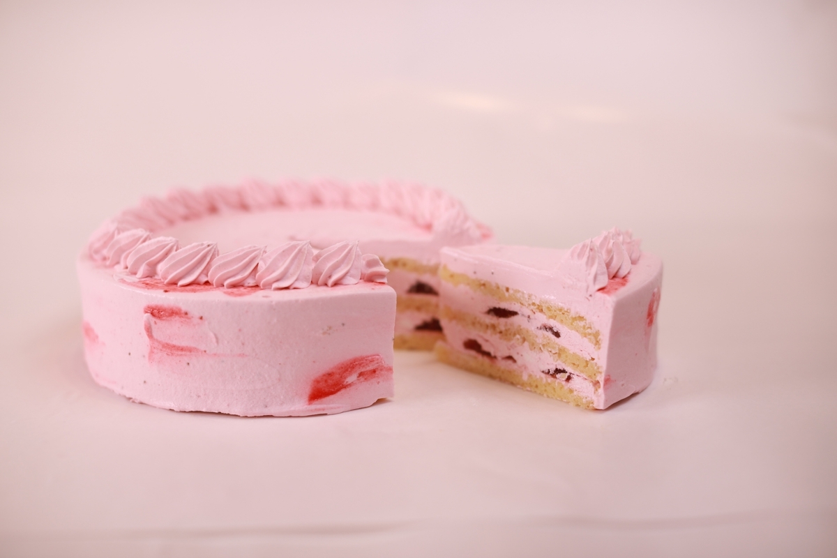 豆乳や米粉で出来たしっとり生地を、いちごの豆乳クリームでデコレーション。