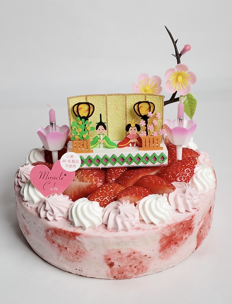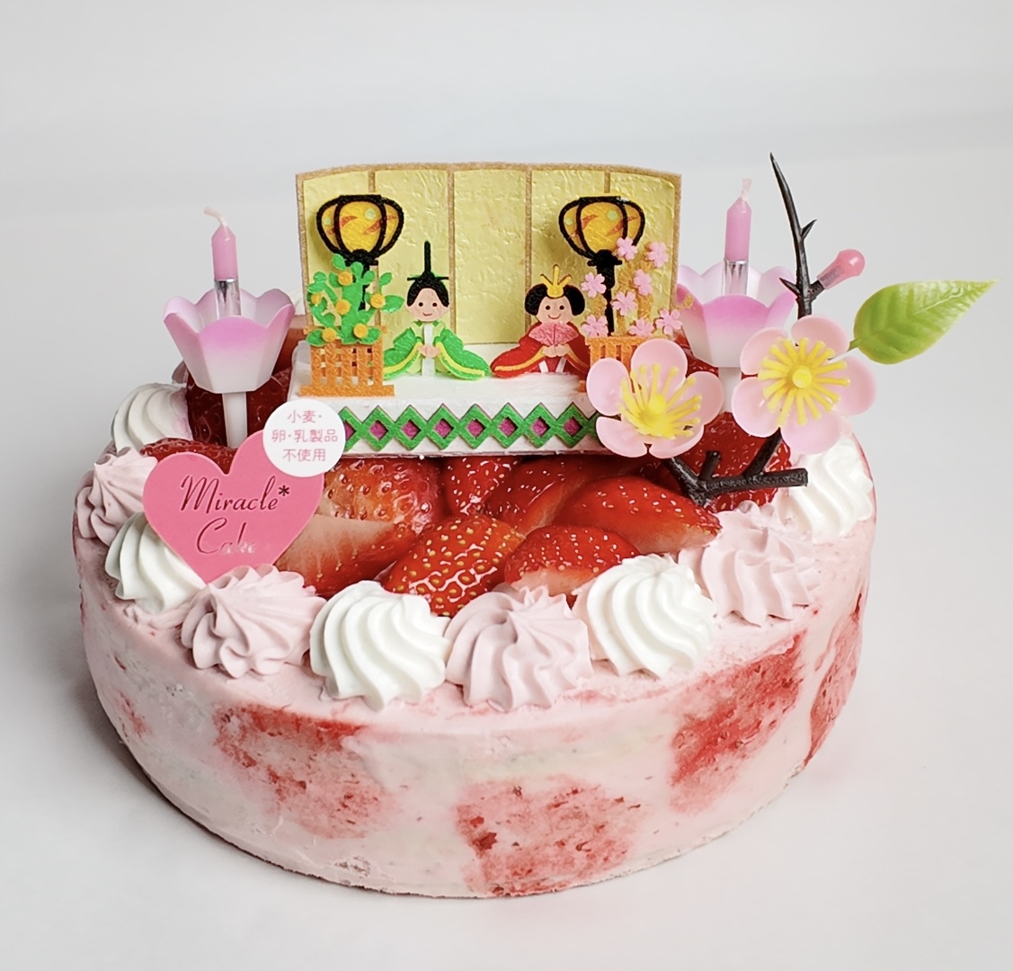 【4号】ミラクル*いちご ひなまつり | 卵乳小麦不使用 米粉と大豆のグルテンフリー・アレルギー対応ケーキ